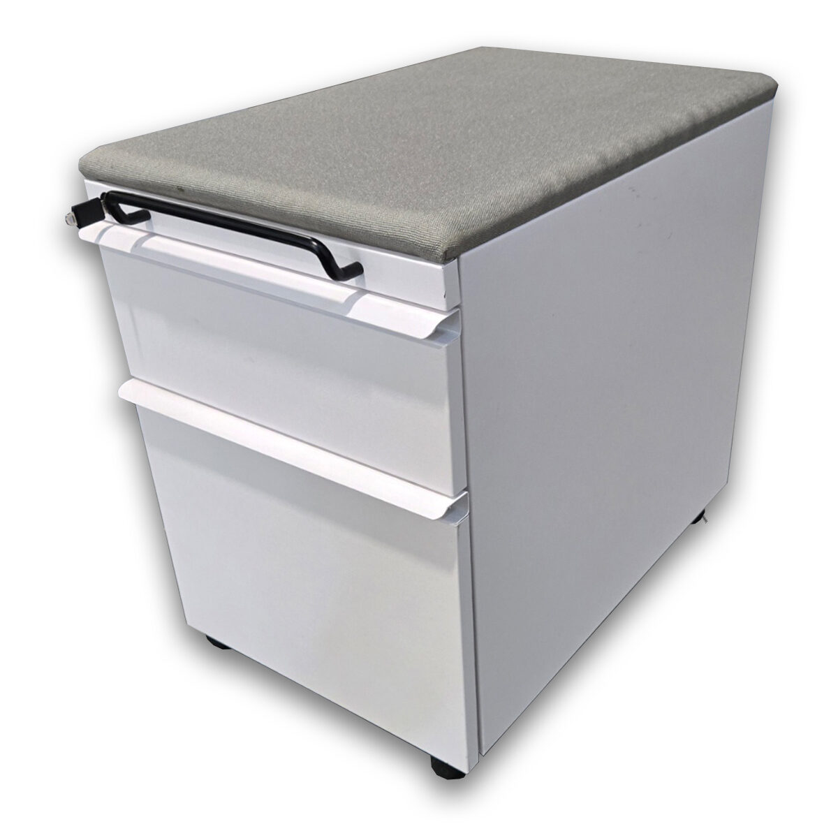 Used White Mobile Box/File Pedestal With Grey Cushion Top