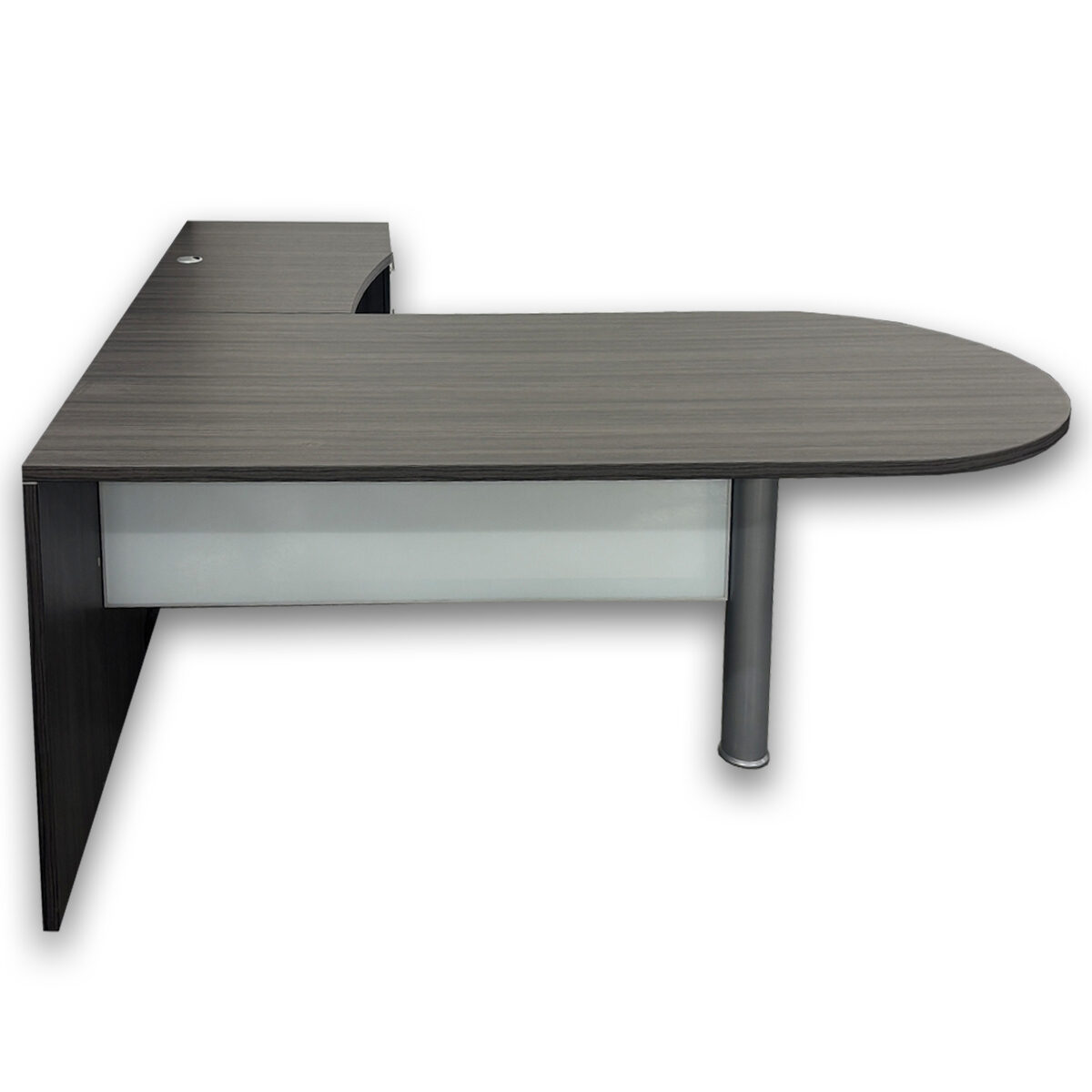 Used CorpDesign Potenza L-Shape Bullet Top Desk With Glass Modesty Panel – LH