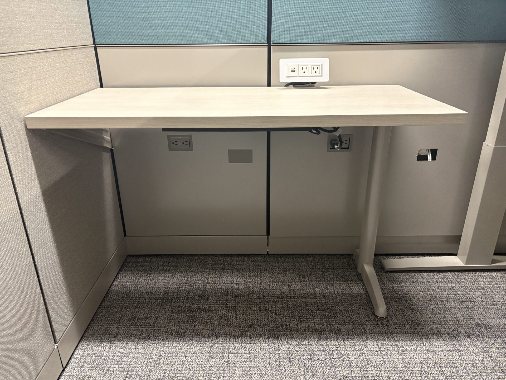 Fully loaded cubicle designed to support focused work and collaboration. This 2019 Herman Miller Canvas setup combines electric sit-stand desks, integrated power, and organized storage in a clean benching layout that maximizes usable space.