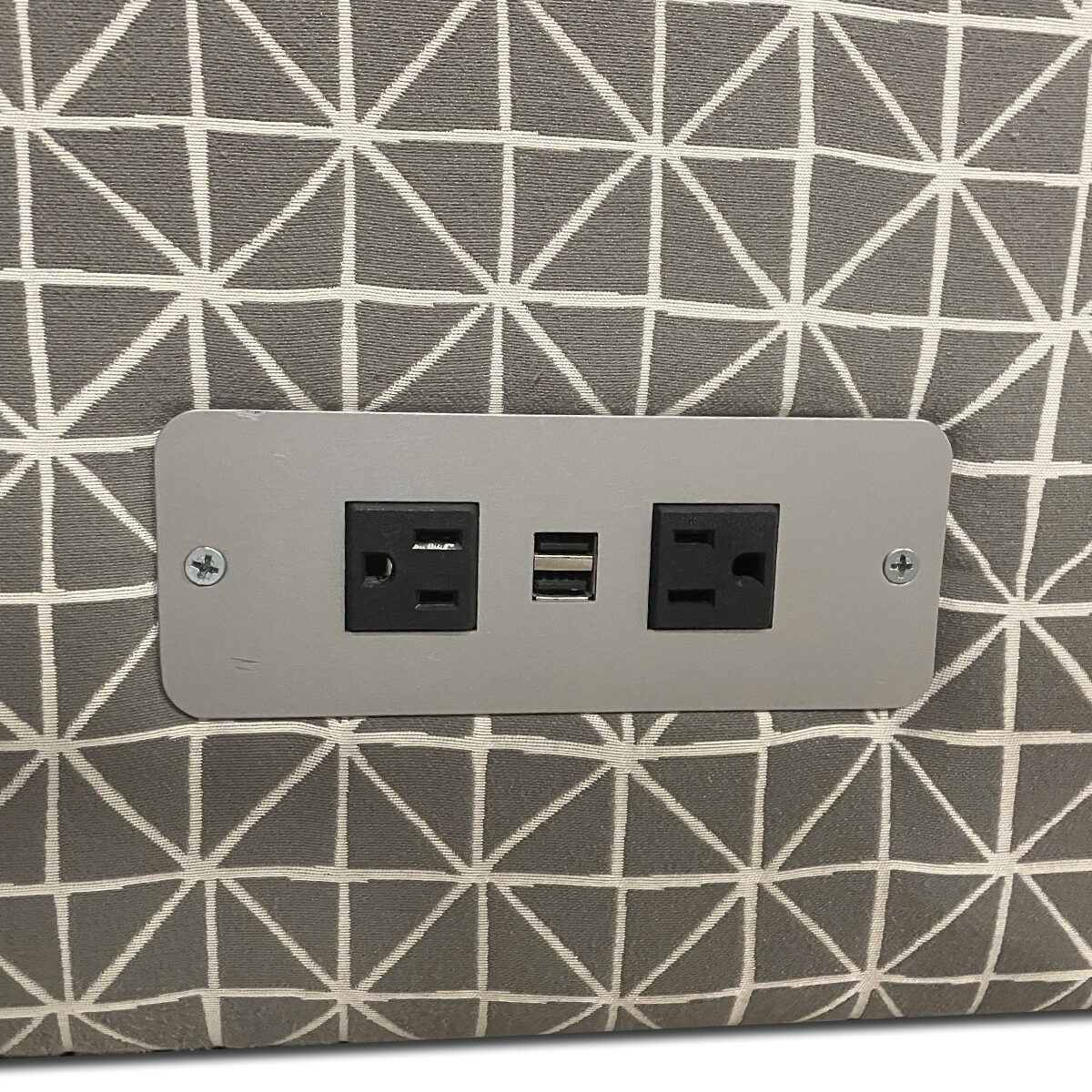 - Built-in power: two outlets plus dual USB ports