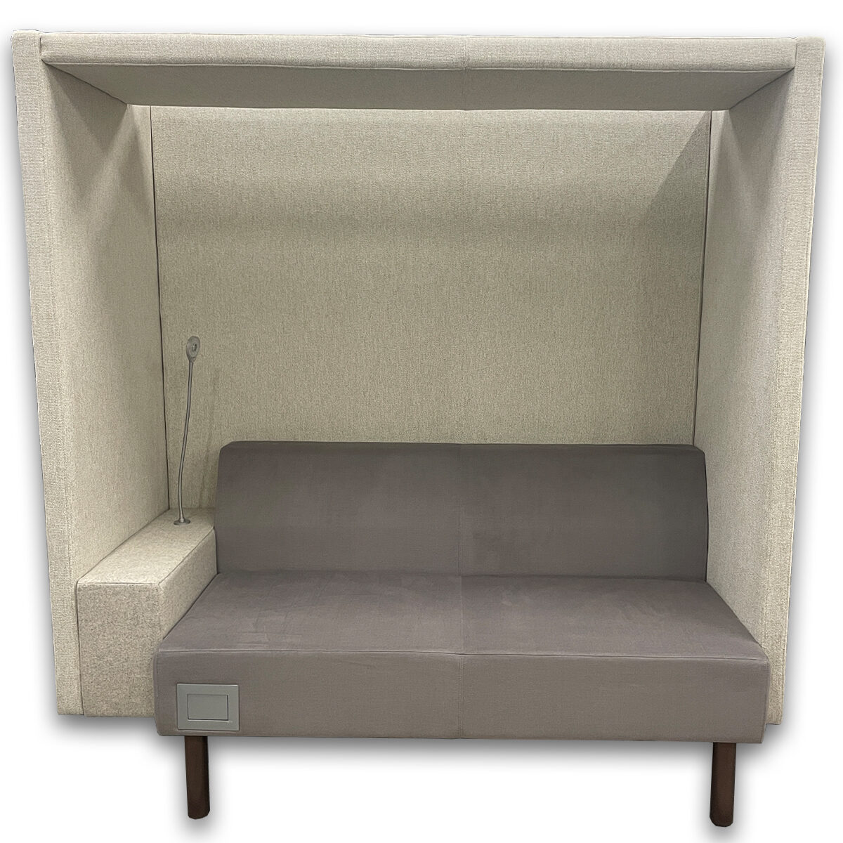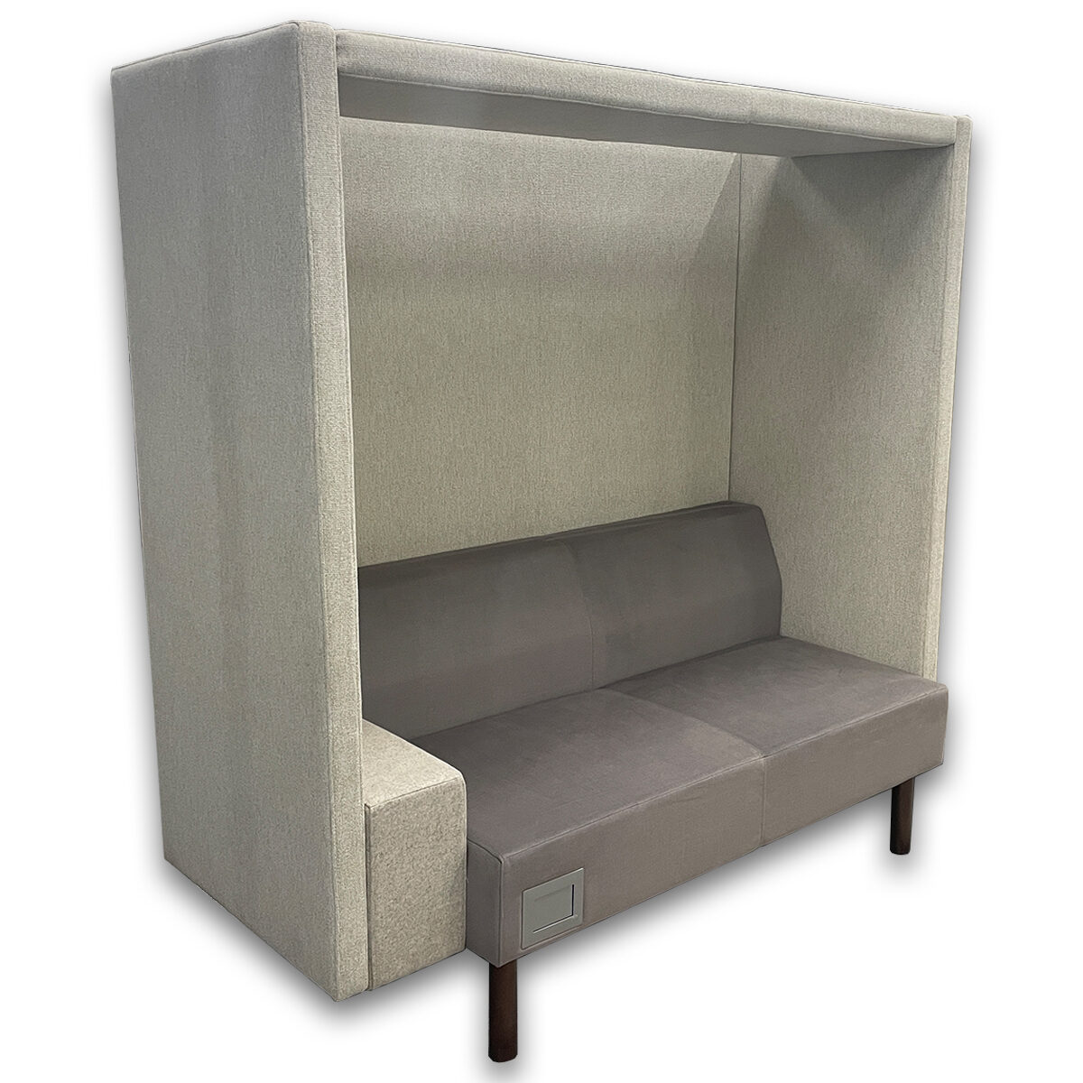 - Upholstered privacy booth with integrated seating