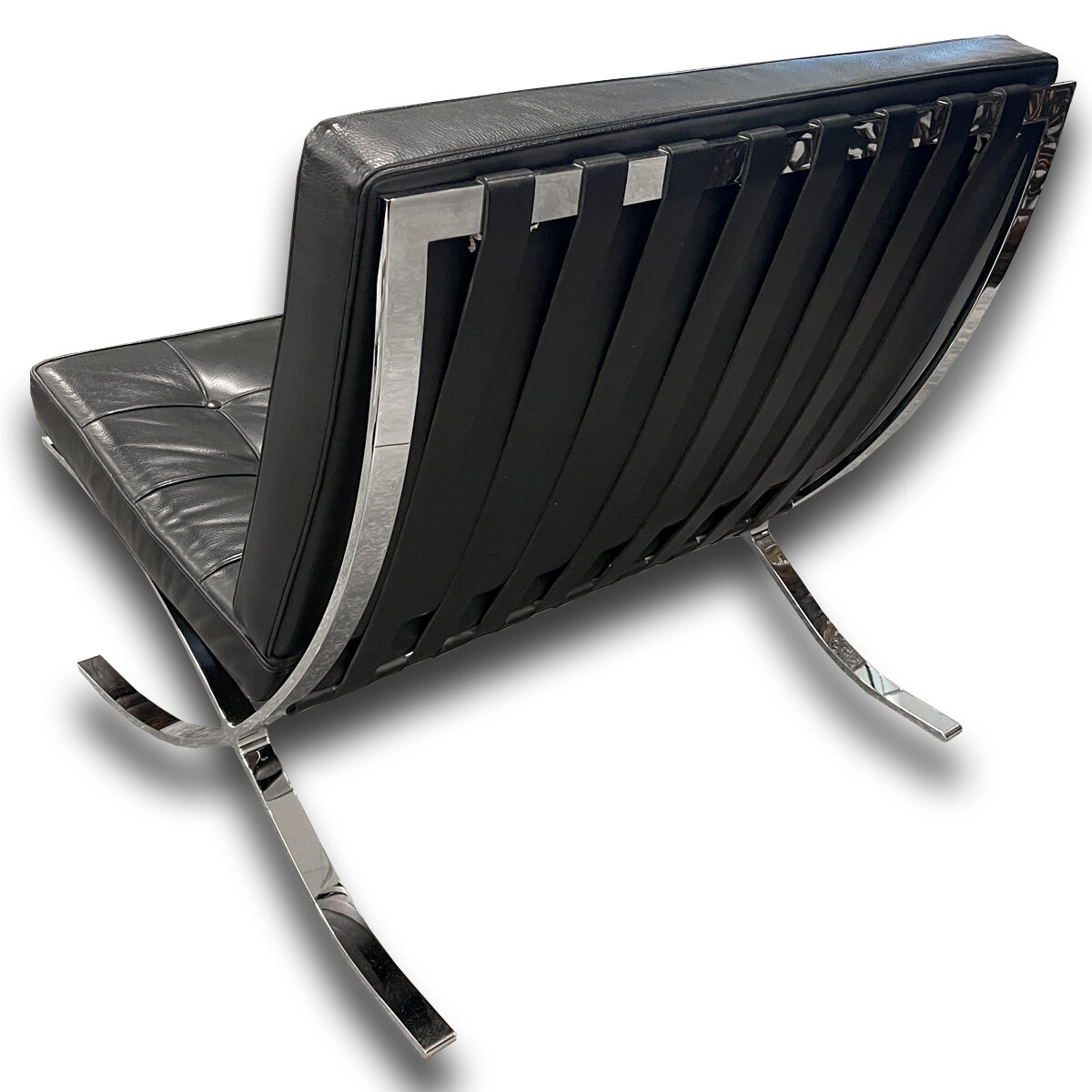 This chair offers a strong commercial quality build with real leather cushions and a polished steel frame. A solid option for anyone wanting the Barcelona look without the high Knoll price point.
