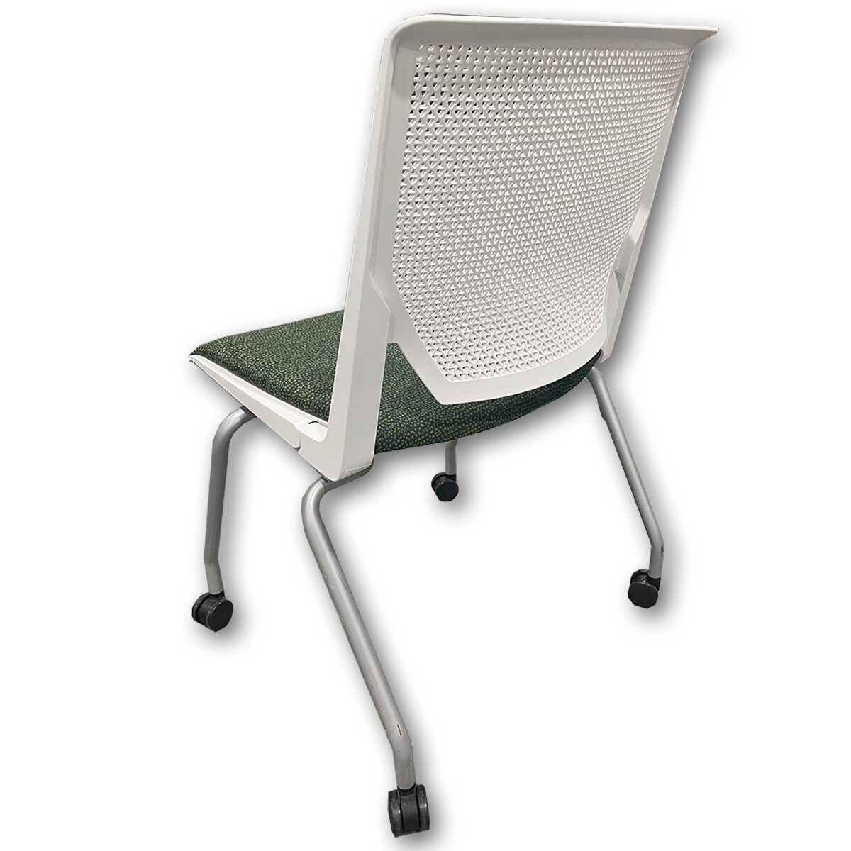Used Haworth Very Mobile Stacking Chair White Frame – Green Upholstered Seat