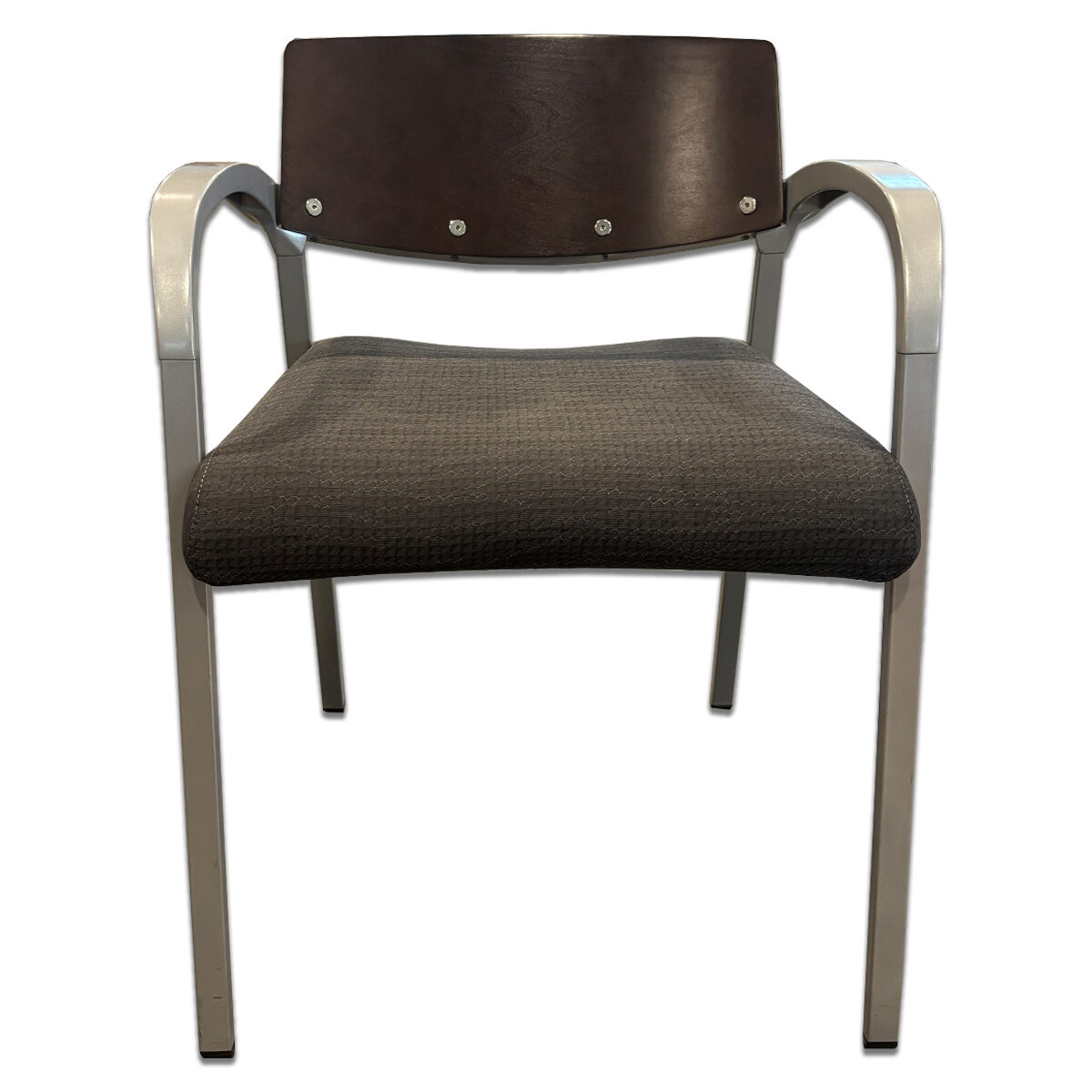 Used National Aurora Guest Chair – Wood Back, Gray Fabric Seat & Powder-Coated Gray Frame