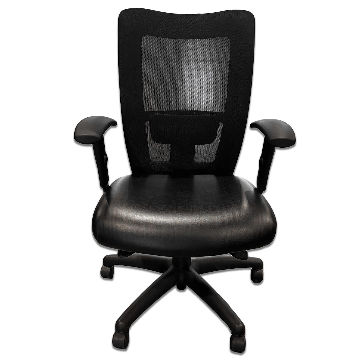 Ergonomic task chair designed for all-day comfort with breathable black mesh back, cushioned black fabric seat, and a wide range of adjustments for personalized support.